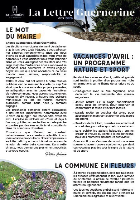 Votre magazine d'informations municipales la lettre guernerine est consultable en ligne en cliquant sur le lien suivant :