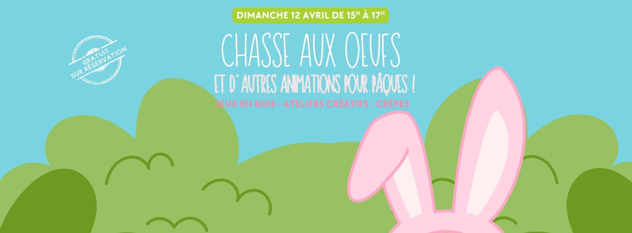 Gratuit – sur inscription pour la chasse aux oeufs (15h30 : 6-10 ans et 16h30 : 2-5 ans)